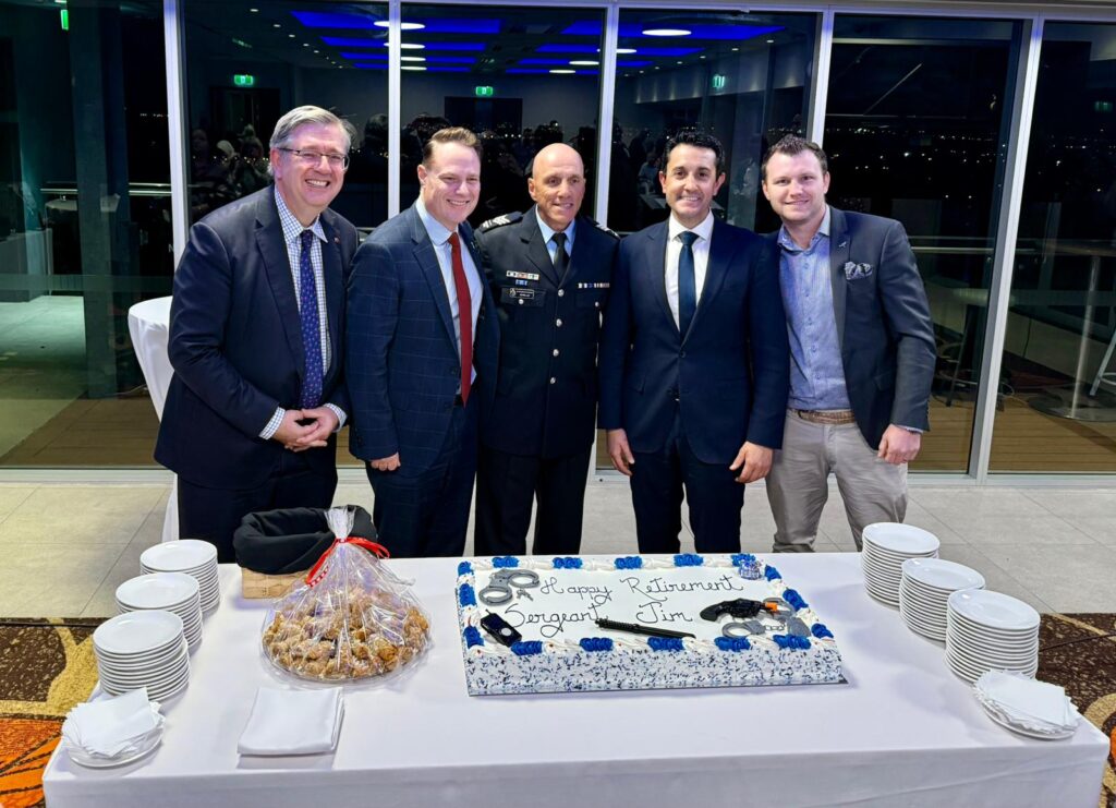 The event was attended by Premier David Crisafulli, Mayor Adrian Schrinner, retired Police Commissioner Bob Atkinson and many community leaders – a sign of the respect in which Jim is held.